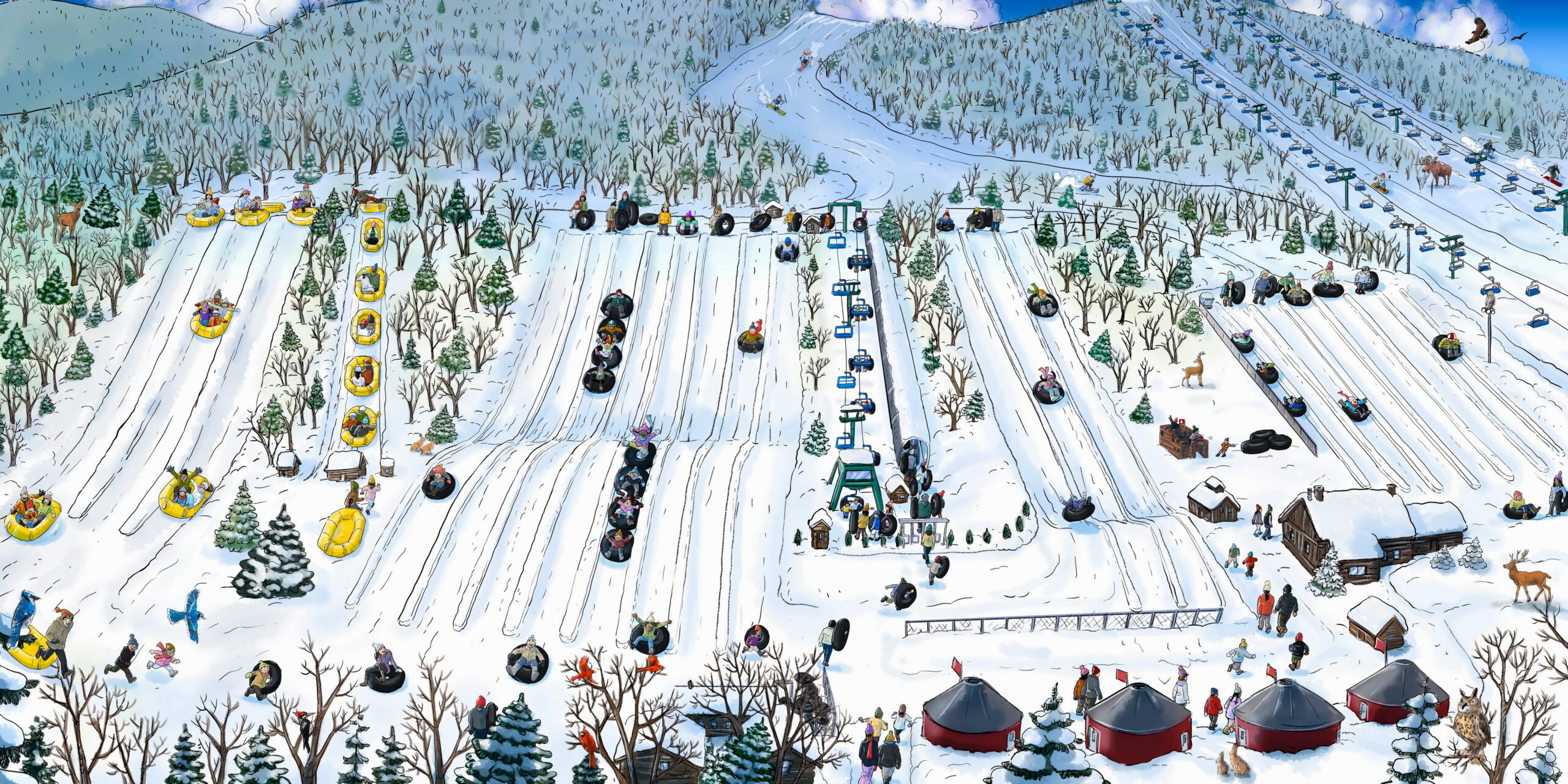 Illustration Illustration Les Sommets Illustration des pistes de glissades sur tubes du Sommet Saint-Sauveur.